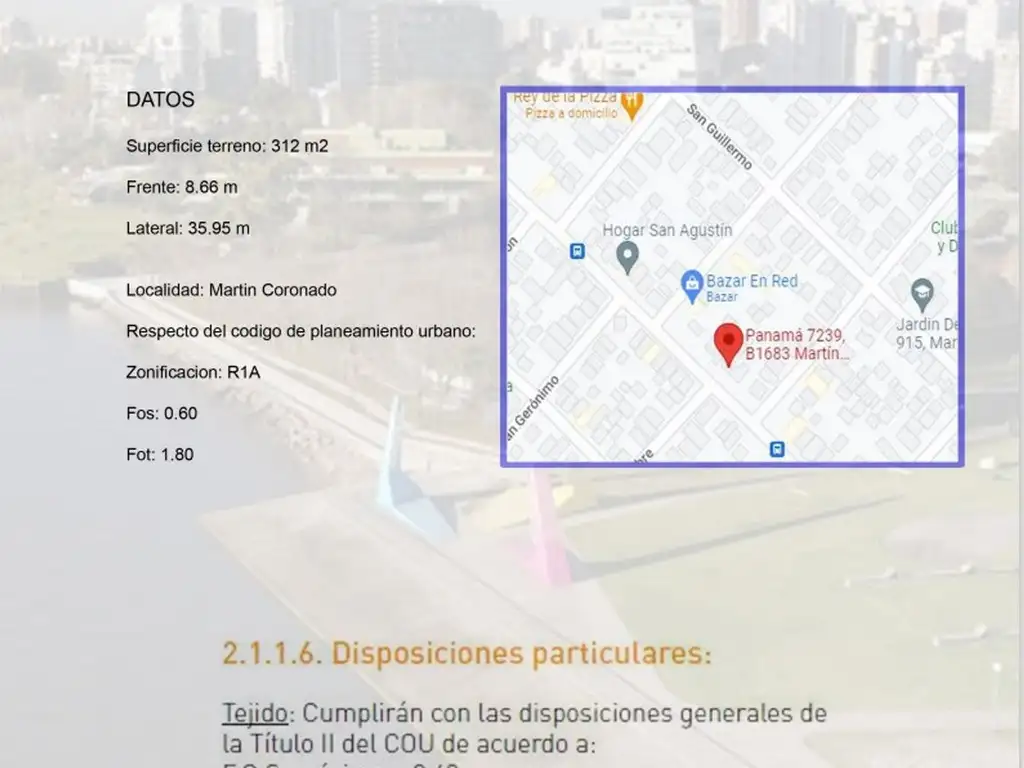 Posibilidad de Construir PB y 3 Pisos. 618 M2 Vendibles y 8 Cocheras en PB