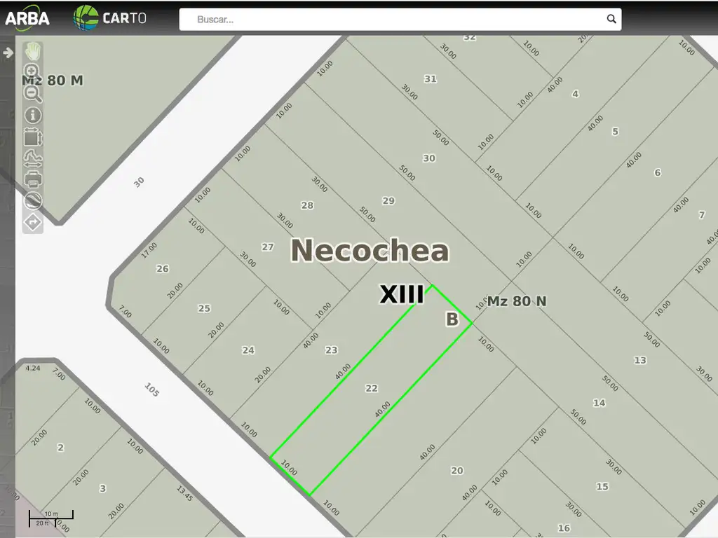 Terreno de 10 mts de Frente por 40mts de fondo sobre 105