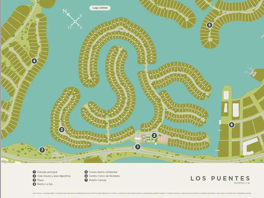 Es un barrio premium al lago central de Nordelta con todos lotes al agua que van de 800m2 a 1300m2. La zona en la que se encuentra es próxima a la salida de Bancalari y ubicado entre el futuro Centro Cívico y el barrio La Isla.