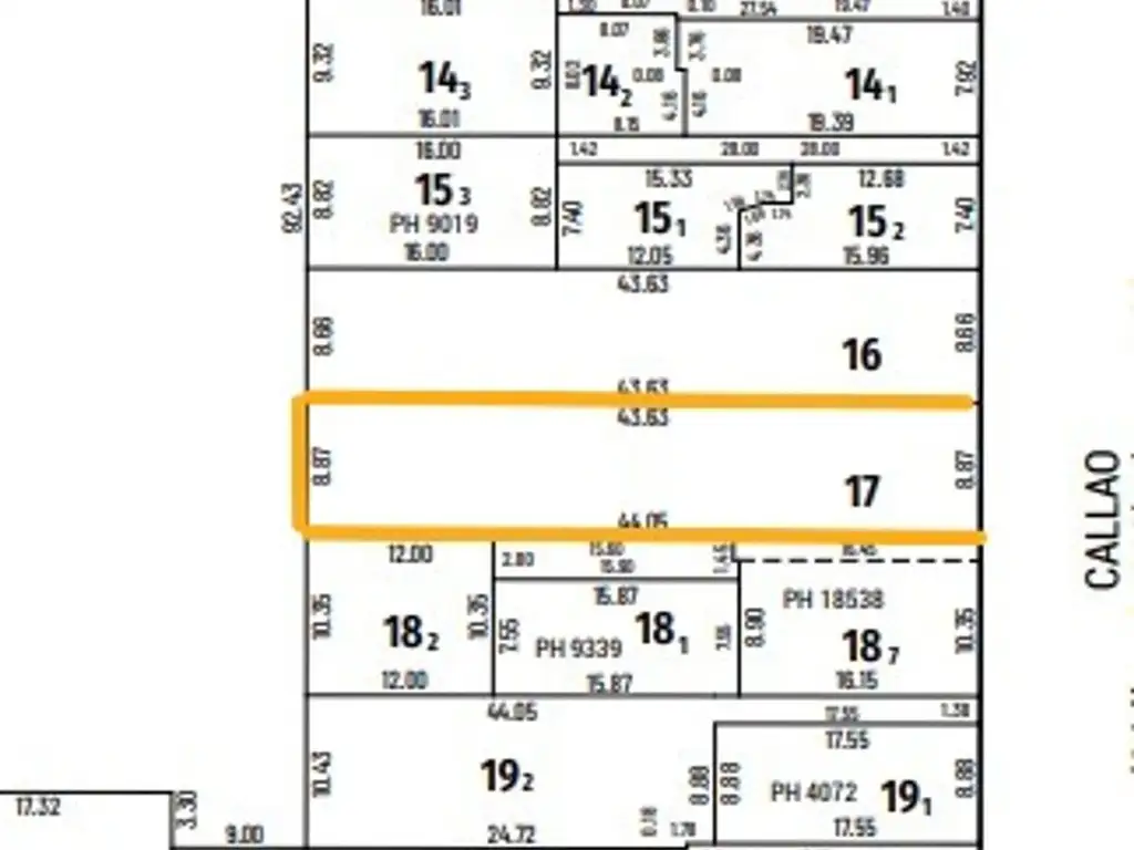 Terreno de 8,66 mts x 43,62 mts, 377 m2 de superficie, según CERTIFICADO URNAISTICO se puede desarrollar Planta Baja y 6 pisos.
