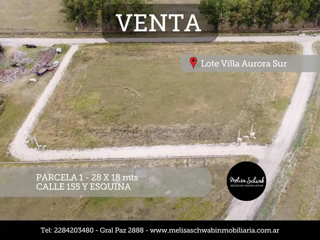 Lote parcela 1 de 28 x 18 mts, ubicado en Calle 155 y esquina, con servicio de luz y alumbrado publico.