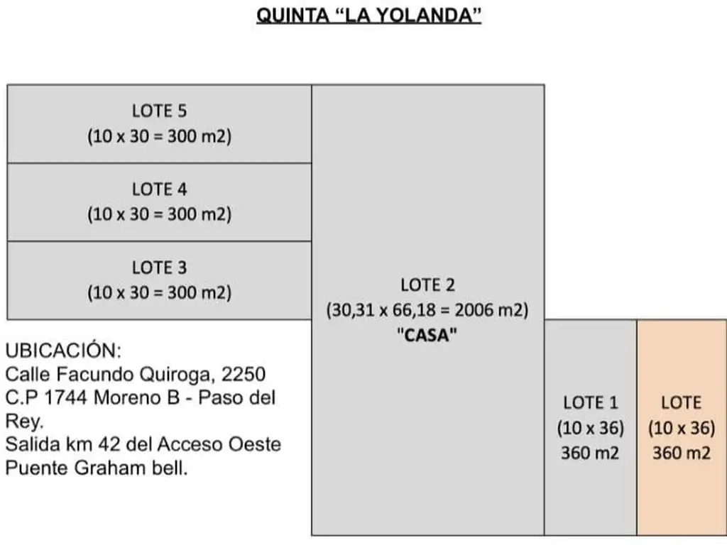 El terreno se encuentra dividido en 5 lotes (ver plano), opcion de comprar un lote o la casa con su lote. (ver plano)