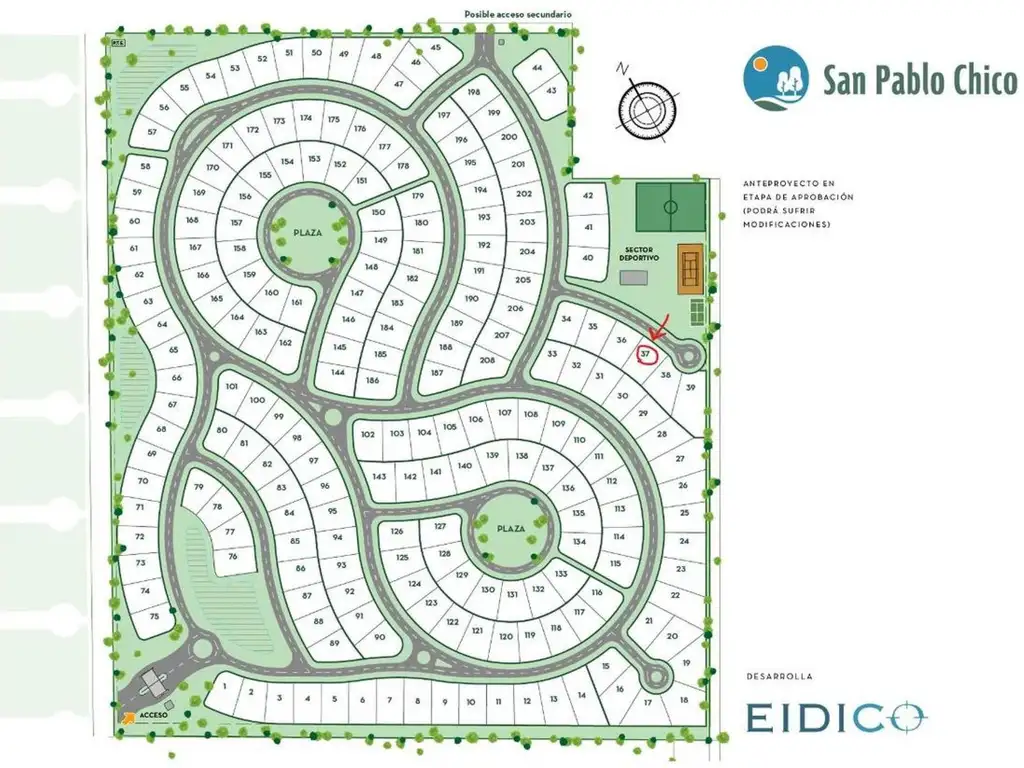 _Terreno de 622 m2 en venta ubicado en San Pablo Chico (Pilar, Buenos Aires). Con orientación Noreste y disposición interna.