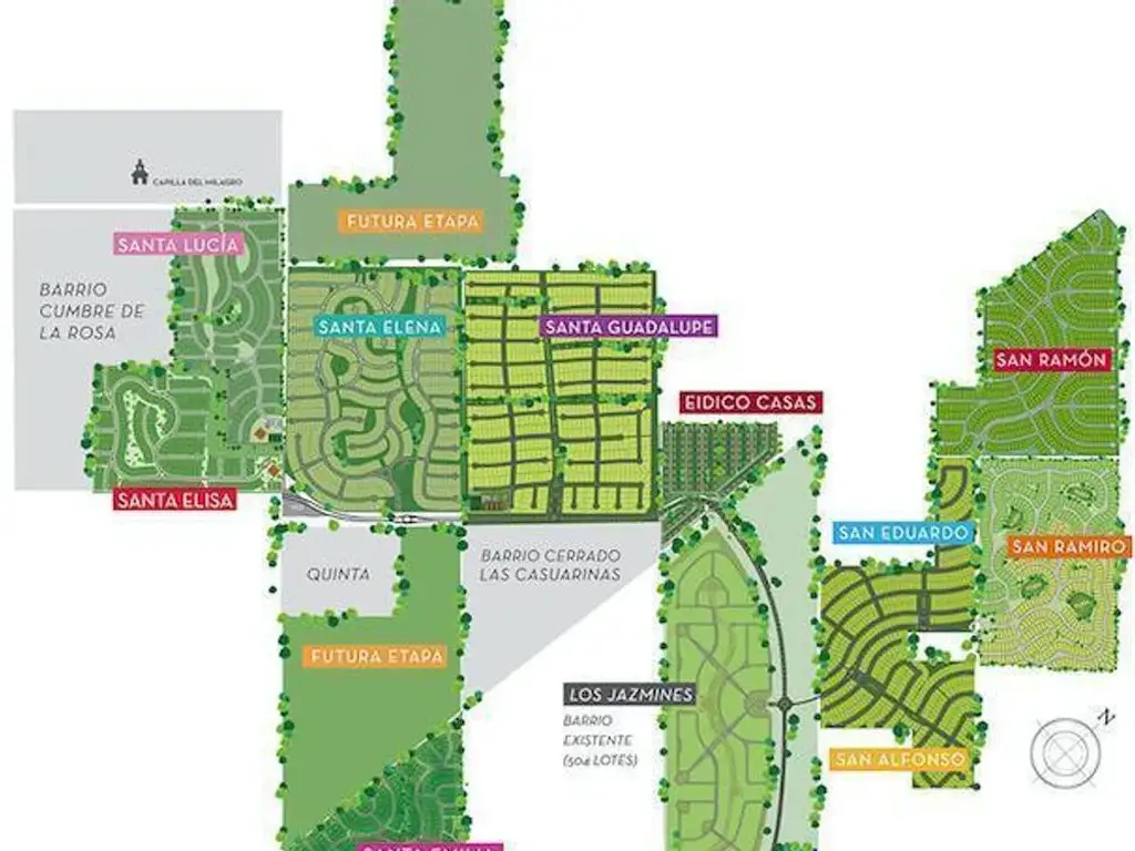 Dentro de Pilar del Este se encuentra ubicado el barrio privado Santa Elena que cuenta con 678 lotes.