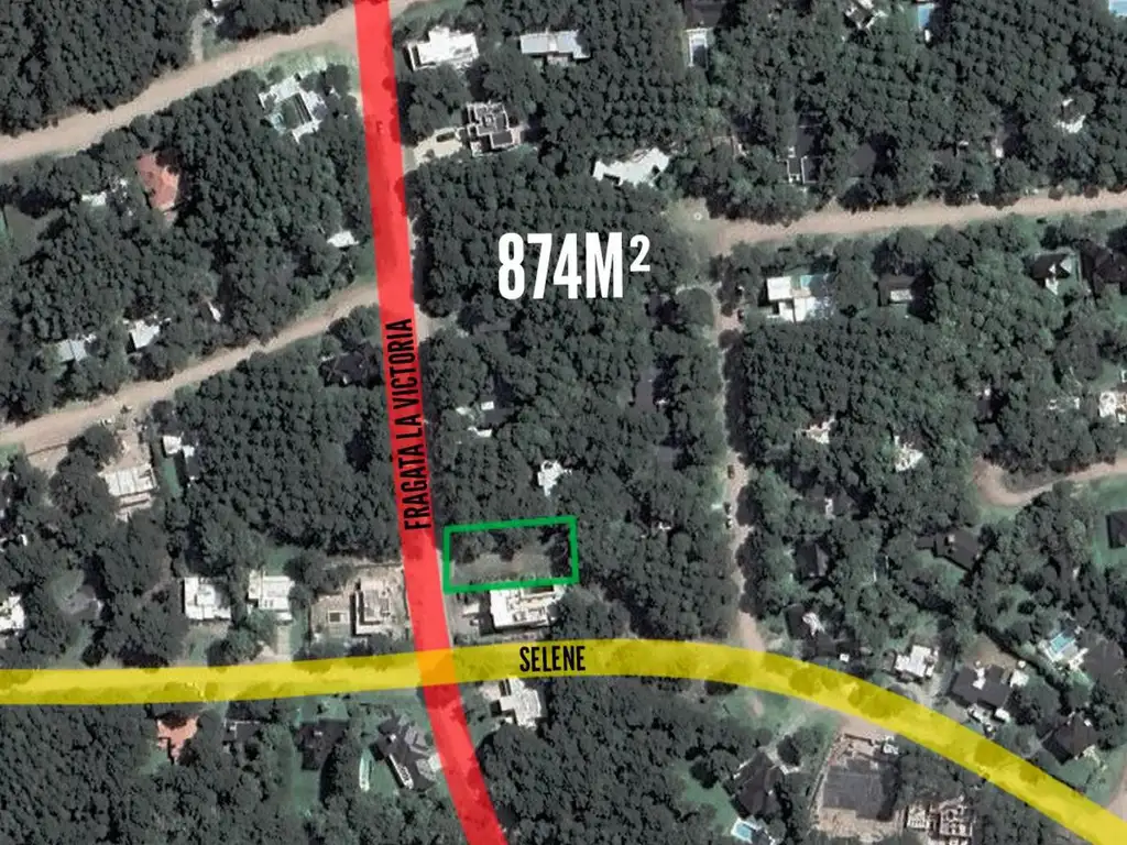 _ Terreno en venta ubicado sobre calle Fragata La Victoria entre Selene y Helios (Pinamar, Buenos Aires). Con disposición frente y orientación al oeste.