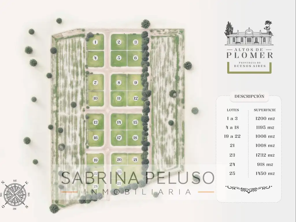 Lotes desde los 918 m2 a 1450 m2.