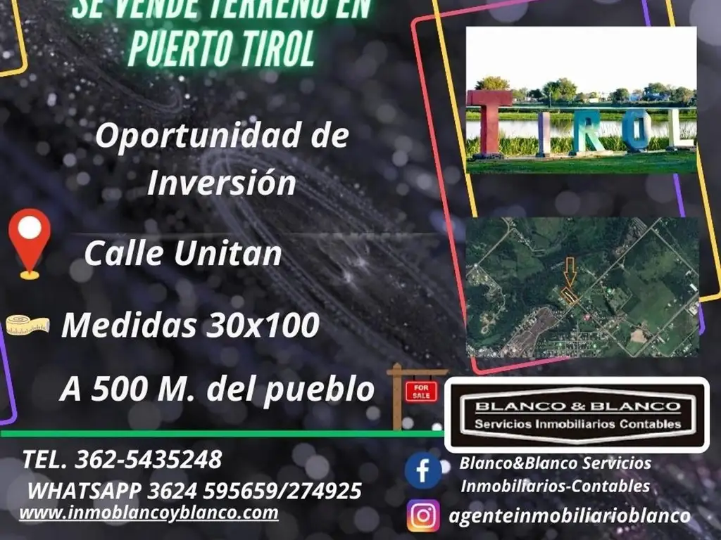 Se Vende Terreno de 30x100 en Puerto Tirol