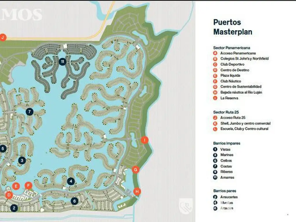AMARRAS: 647 lotes de 940 m2 promedio. Ubicado sobre el Lago Central de Puertos.