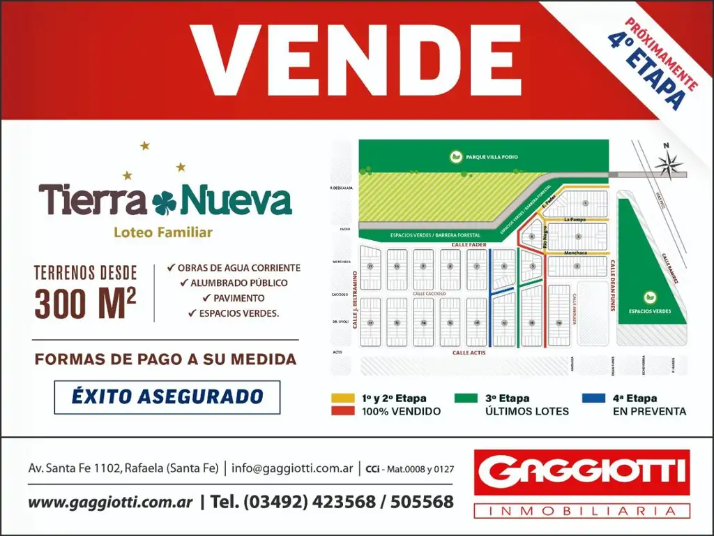 Comprendido entre las calles Beltramino, Actis y Dean Funes, nace un nuevo loteo en un nuevo barrio. Lotes desde 300 m2 con pavimento, alumbrado público, agua corriente y energía eléctrica domiciliara en condiciones de conectar. Lotes de 4 etapa suman además la obra de cloacas. FORMA DE PAGO: ENTEGA Y HASTA 60 CUOTAS.
