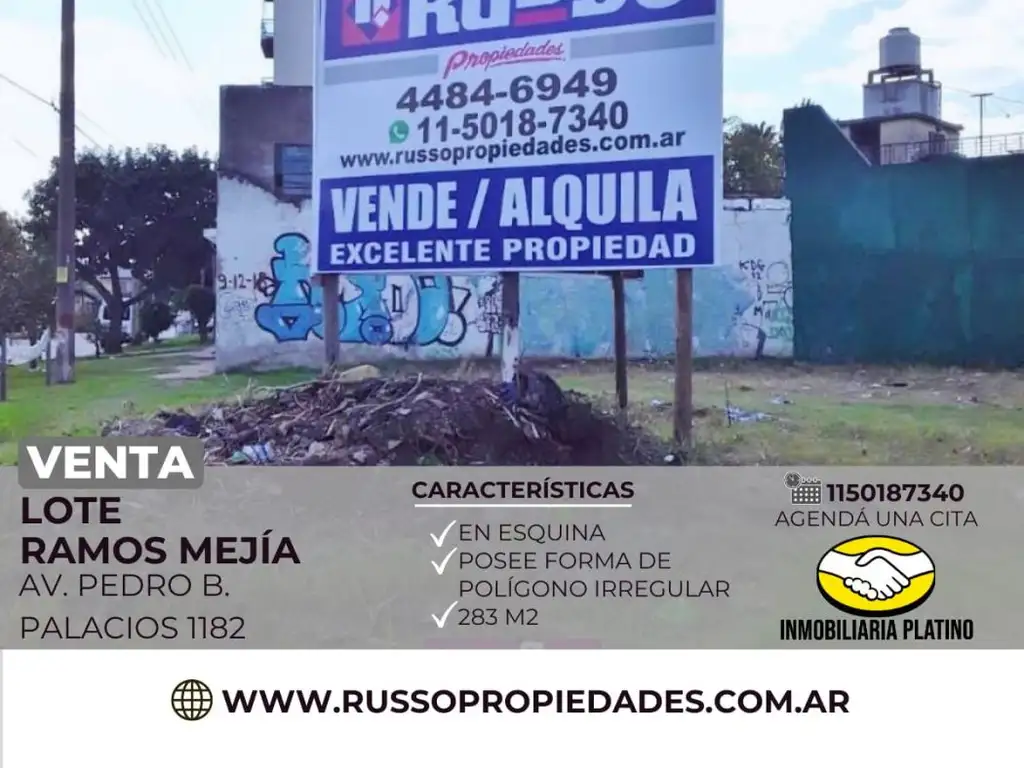 Es un LOTE sobre la avenida P. B. Palacios, en la esquina con la calle F. Varela, que tiene forma de polígono irregular con una superficie de 283 mtrs2