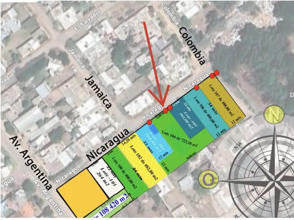 Fondo 34m y luego de ensancha 12 m x 36,80 metros