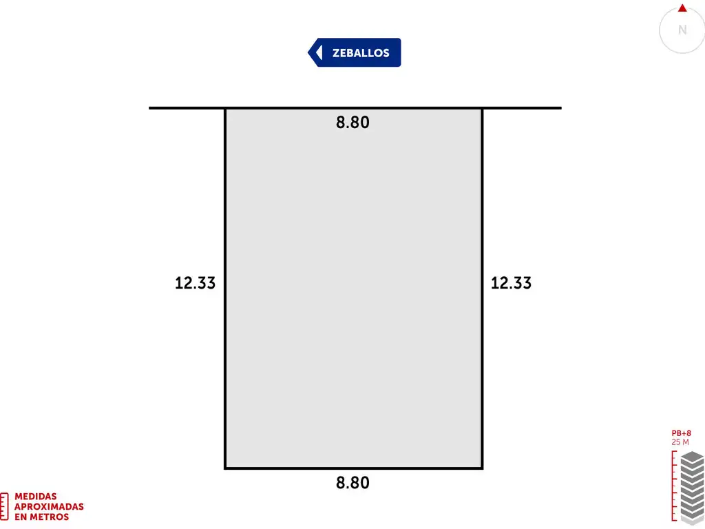 Terreno orientado al norte en el centro de Rosario, a metros de la UTN. Posibilidad de construir PB + 8 pisos. Altura máxima 25m.