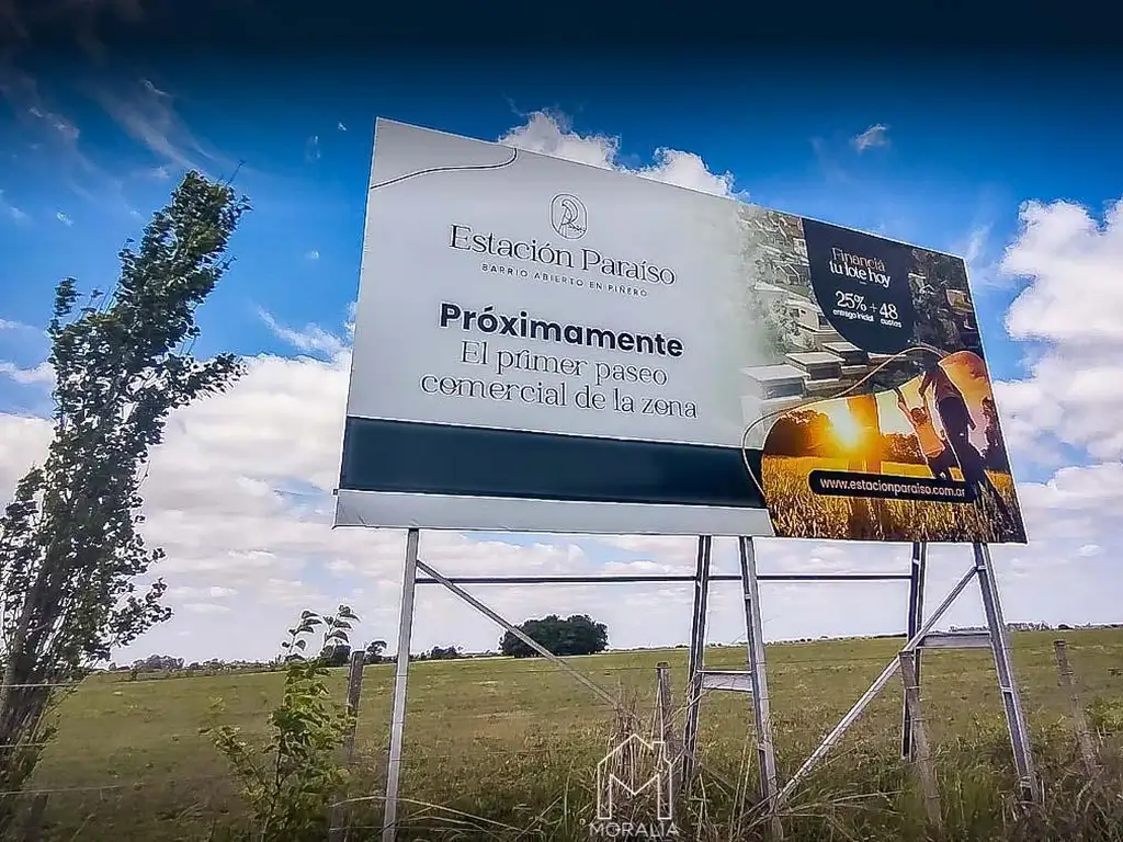 Venta lotes en barrio abierto residencial, ESTACIóN PARAISO, PIñERO, un espacio pensado para que disfrutes de la tranquilidad, el aire libre y la comodidad de proyectar la casa que siempre soñaste. SERVICIOS: Agua potable, Alumbrado público, Cordón cuneta, Tendido eléctrico domiciliario, Cloacas, Fibra Optica y Forestación.-Invertí hoy en una zona en pleno crecimiento, con excelente ubicación y rodeado de naturaleza.