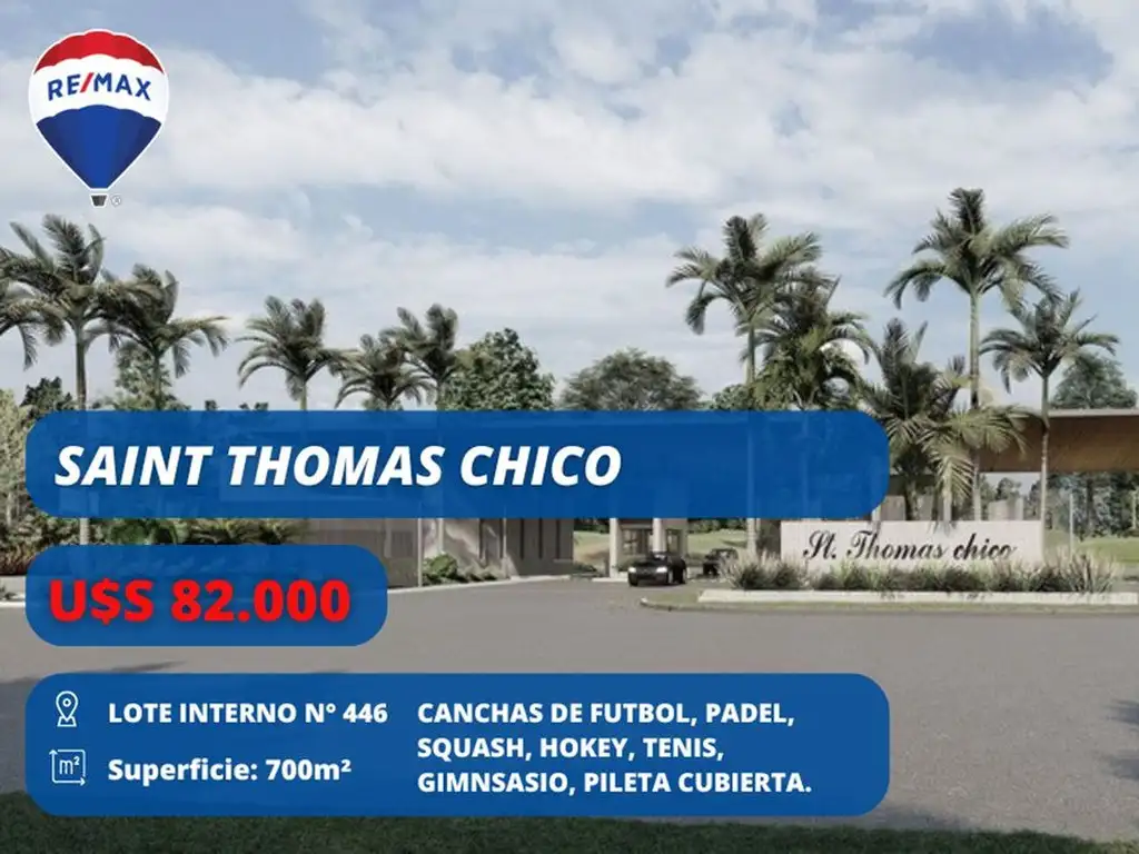 Lote interno N° 446 en venta en el barrio Saint Thomas chico, el mismo cuenta con 1000 metros, y su ubicación en el barrio es muy cercana al ingreso y a las áreas recreativas.