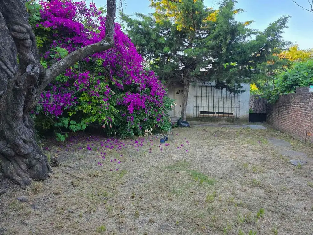 En el centro del terreno cuenta con una casa que posee un Living, dos dormitorios, ( uno grande y uno chico) y continuando hacia el fondo, la parte trasera de la casa que cuenta con una cocina y un baño. Este sector se encuentra para demoler.