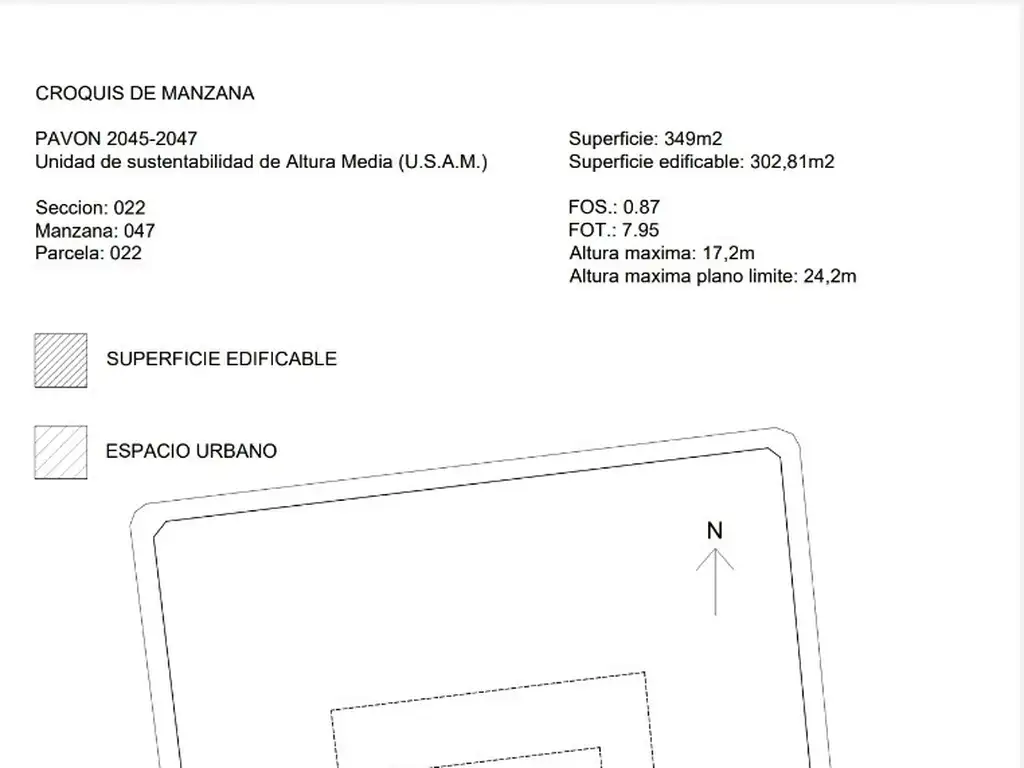 Pavón 2000. 10 x 30 = 349 m2. Fot 7,95. Para construir 2775 m2. 7 pisos, más subsuelo