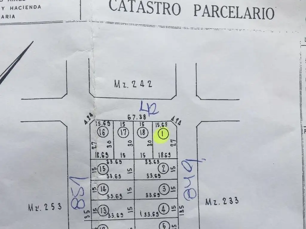 TERRENO UBICADO EN El Barrio DE SAN EDUARDO, LOTE 1, MANZANA 243, SECC KK CI 4, SOBRE LA CALLE 42 ENTRE 849 Y 851, CUALQUIER CONSULTA NO DUDE EN LLAMAR.-