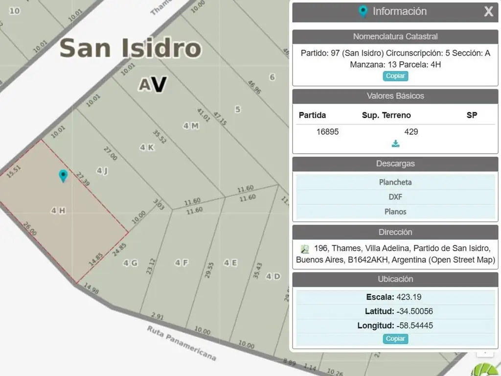 Lotes en venta en la esquina de Colectora Panamericana y Thames, San Isidro, Bs. As., oportunidad para desarrollo comercial sobre esquina muy transitada con gran flujo de tráfico. Son dos lotes cuyas medidas son 428,62 m2 y 271,95m2, venta en conjunto.