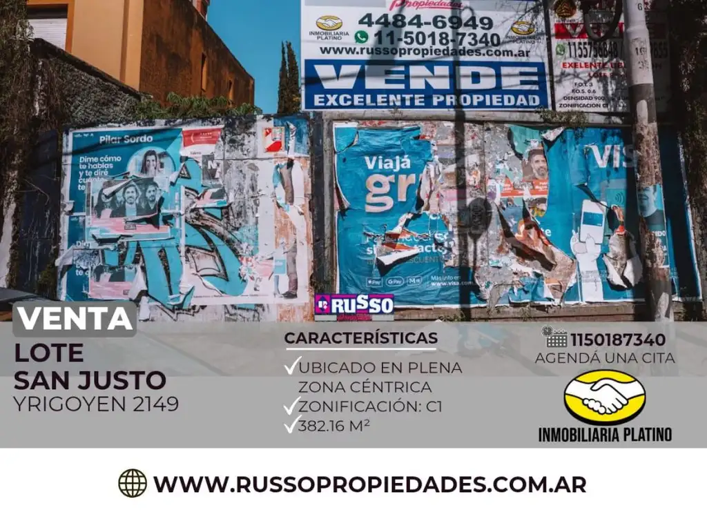 Lote ubicado en plena zona céntrica de San Justo, con una superficie total de 382,16 m².