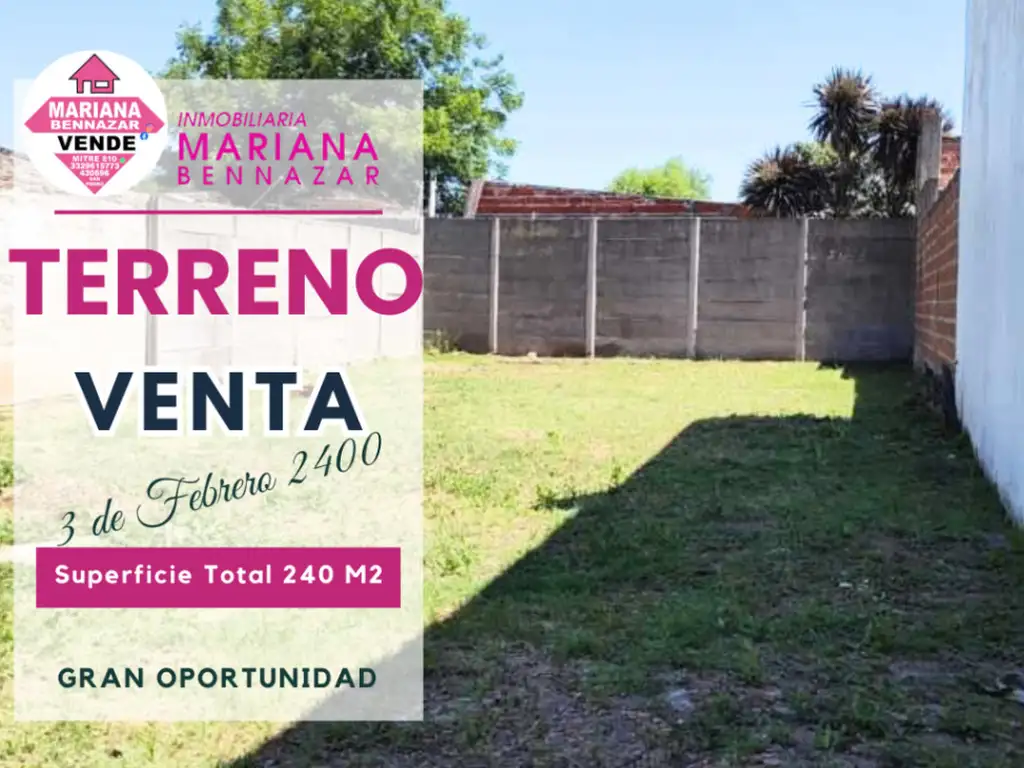 Te presentamos un excelente terreno de 240 m² sobre Av. 3 de Febrero 2400, con una muy buena ubicación privilegiada con gran caudal de tránsito.