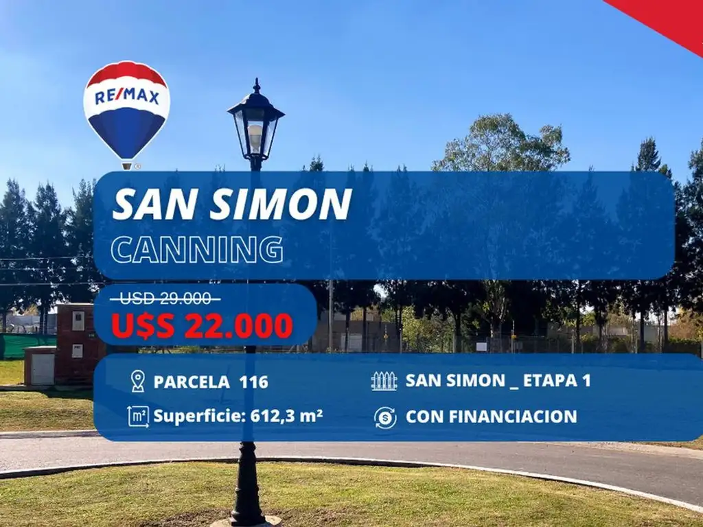 Lote de 612,3 m² ubicado en la Etapa 1 del barrio San Simón, dentro del desarrollo Canning Village.