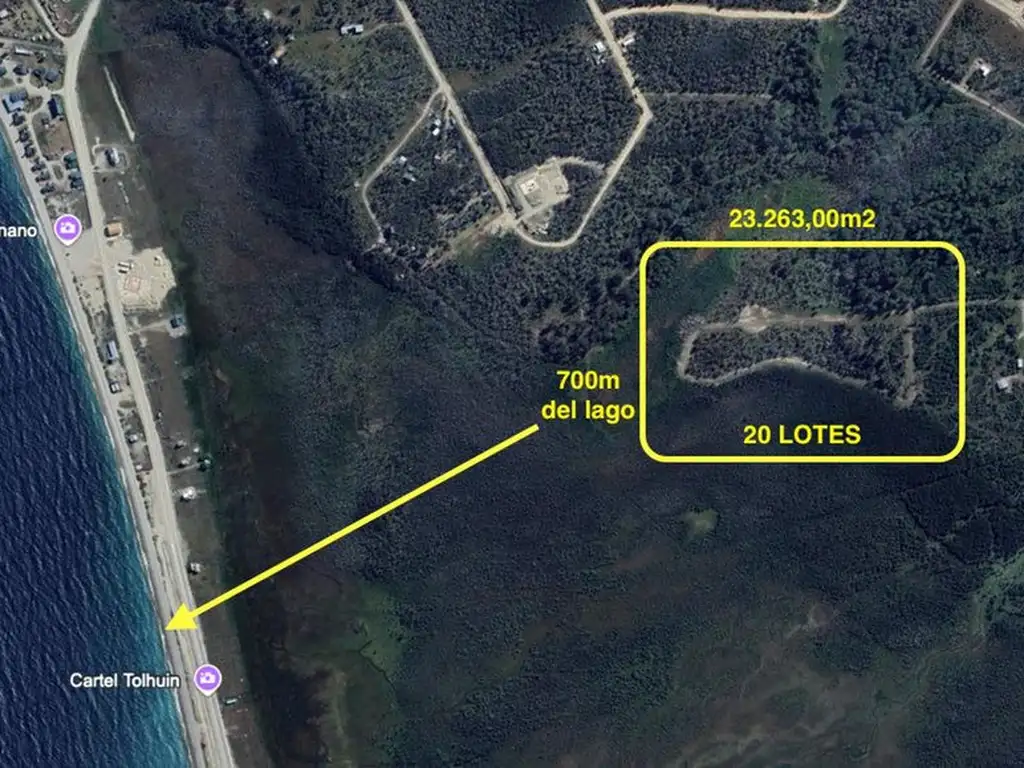 Ponemos a la venta este destacado loteo con una superficie total de 23.263 m², estratégicamente ubicado en Tolhuin, a tan solo 700 metros del Lago Fagnano, uno de los destinos turísticos más valorados de Tierra del Fuego.