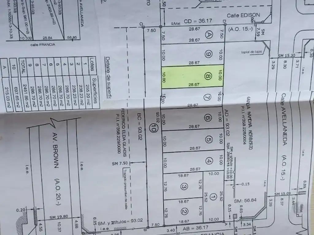 El mismo cuenta con una superficie de 286,70 m², con 10 metros de frente por 28,7 metros de fondo, ideal para construir vivienda.