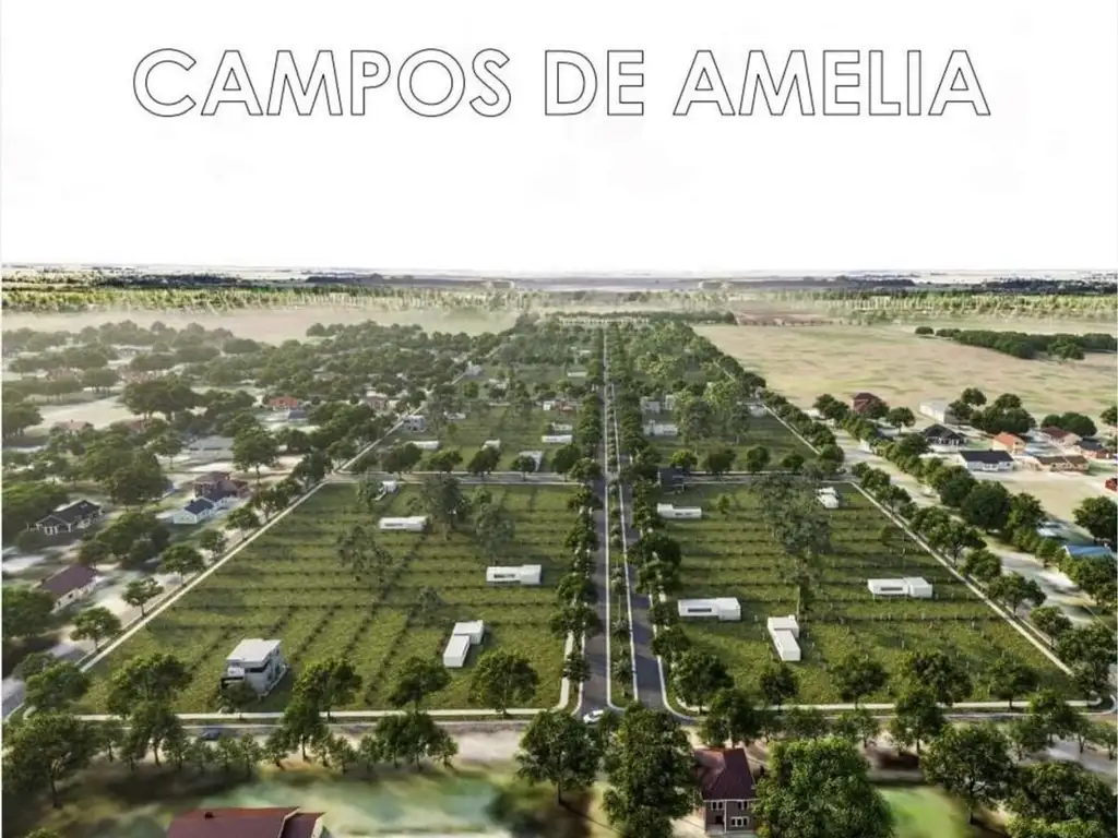 La propuesta del loteo CAMPOS DE AMELIA nace de la premisa de aportar al desarrollo urbano de la comuna de Villa Amelia, potenciando las capacidades de acceso a tierras de calidad para la radicación de nuevas familias, generando oferta de mano de obra en la construcción local para el desarrollo económico de la comunidad y sobretodo generando continuidad al trazado urbano existente. Desde el punto de vista de la ubicación geográfica, se encuentra directamente conectado a la ruta provincial 18 entre Rosario y el Arroyo del Medio. Conecta dicha localidad santafesina y la localidad bonaerense de Pergamino, permitiendo una gran accesibilidad y articulación logística con los centros más importantes del país. De las 20 hectáreas a urbanizar, 12 hectáreas serán las destinadas a lotes particulares de entre 400m² y 700m² en 10 manzanas, de las cuales 8 serán para uso residencial y 2 para uso comercial.
