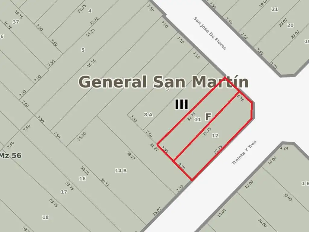 ESQUINA : FRENTE DE 8.75 X 32,75 DE FONDO