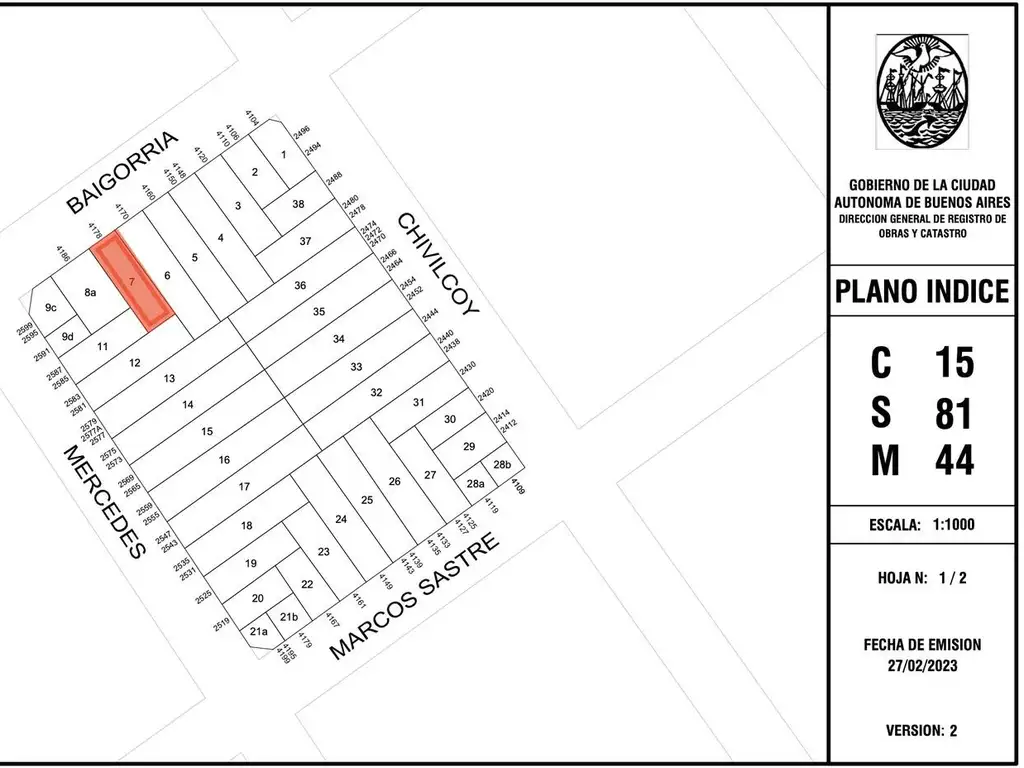 OBSERVACIONES: Las medidas indicadas del lote son al solo efecto orientativo Las reales surgirán del título de propiedad respectivo.
