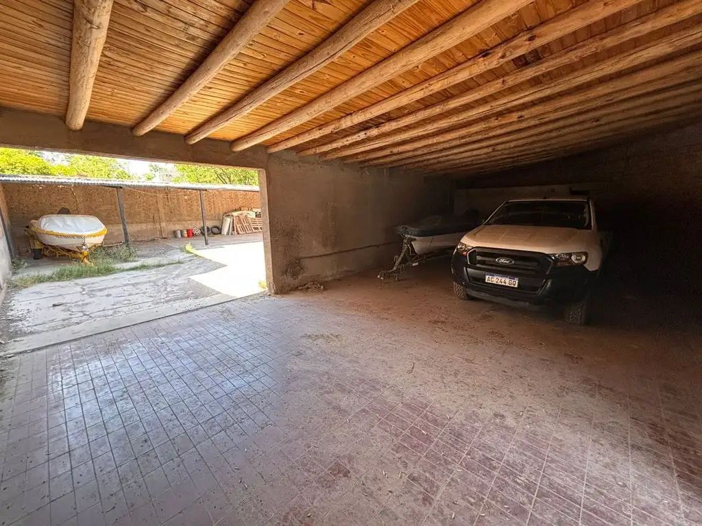 * También costeando calle La Rioja está construído con techo de madera otra doble cochera, que en el fondo cuenta con un baño en mal estado.