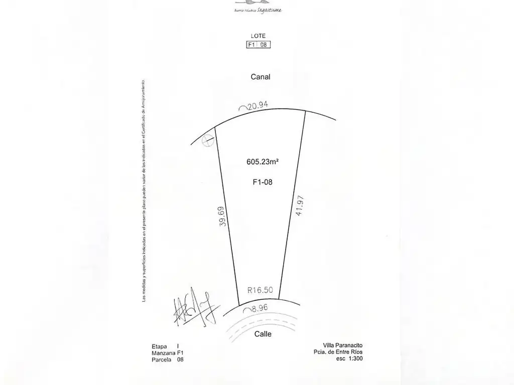 16,50mts de Frente x 39,69mts (Lado) x 20,94mts (Contra frente) x 41,97mts (Lado)