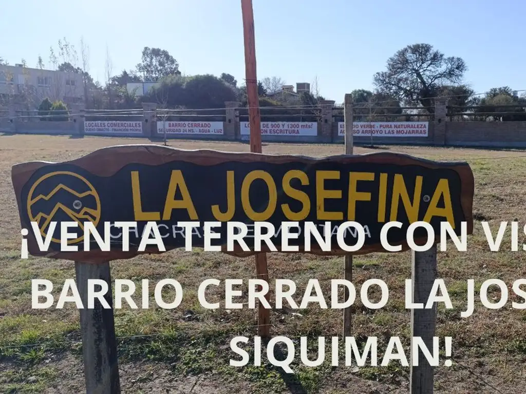 VENTA DE TERRENO 931 M2 EN PERFECTO NIVEL, UBICADOS EN BARRIO PRIVADO LA JOSEFINA - VILLA PARQUE SIQUIMAN SOBRE LA RUTA NACIONAL 38.