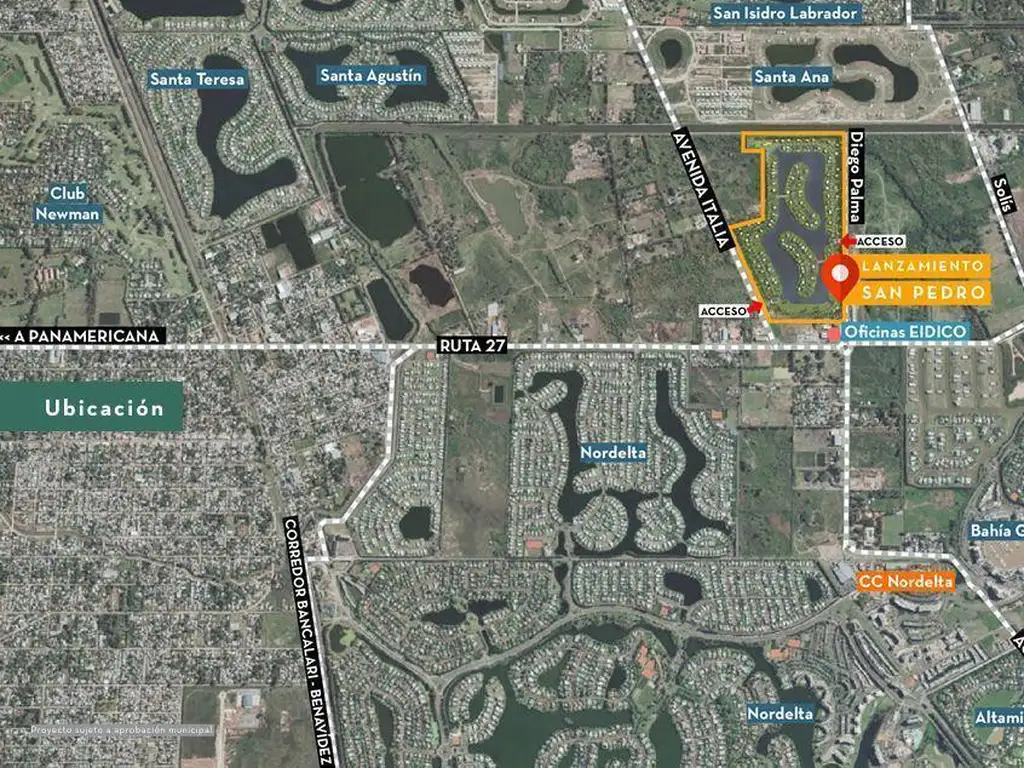 Su diseño se proyecta en torno de una laguna de 14 ha, con islas y puentes. Contará con 276 lotes unifamiliares de los cuales el 65% son a la laguna.